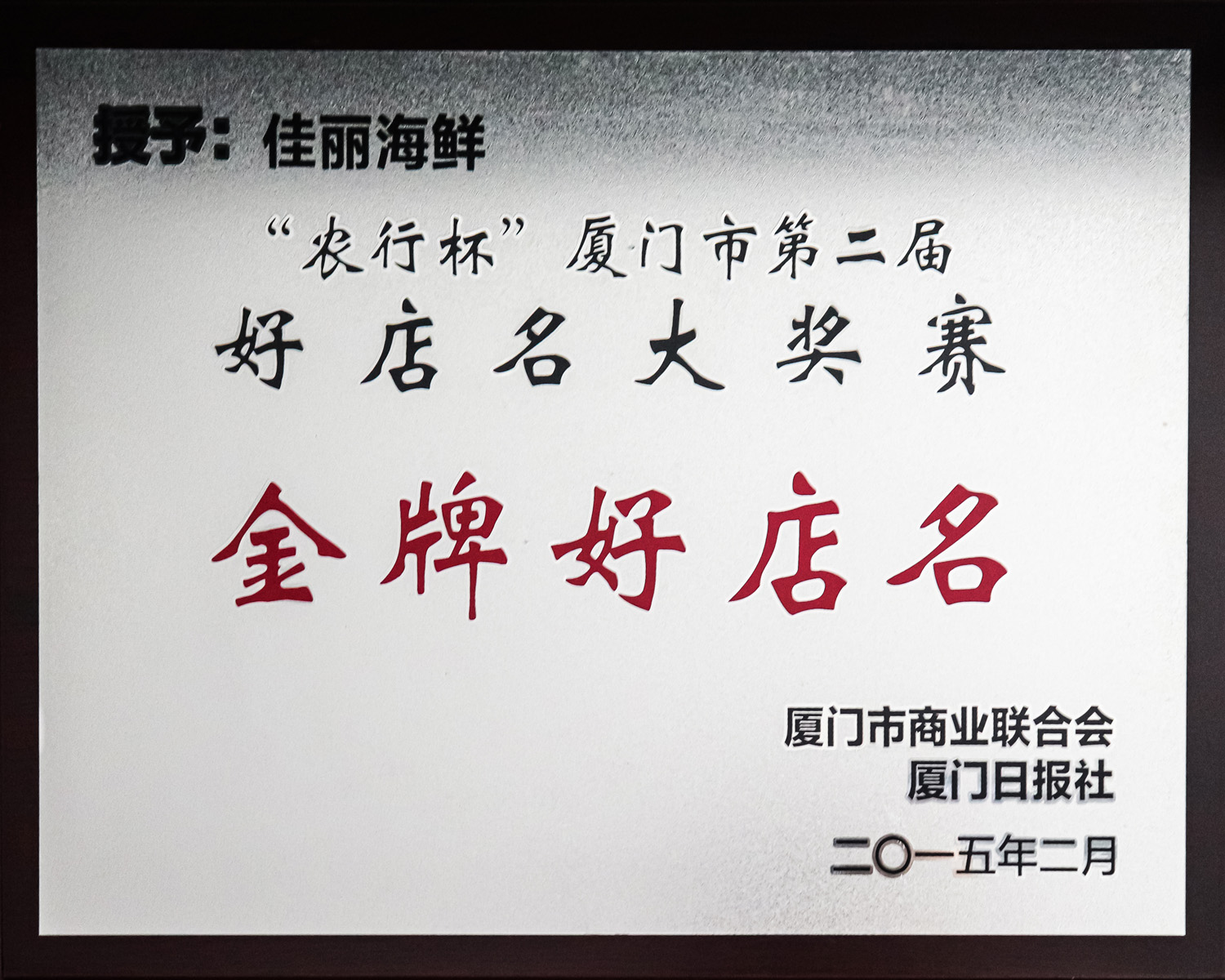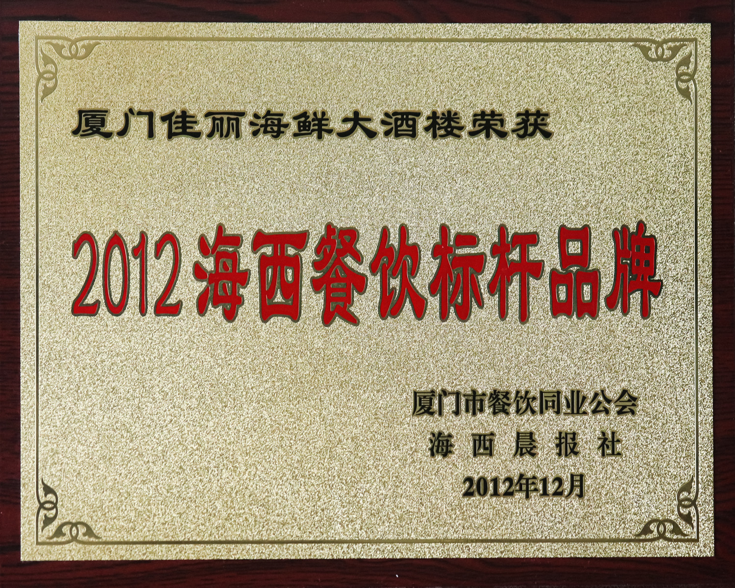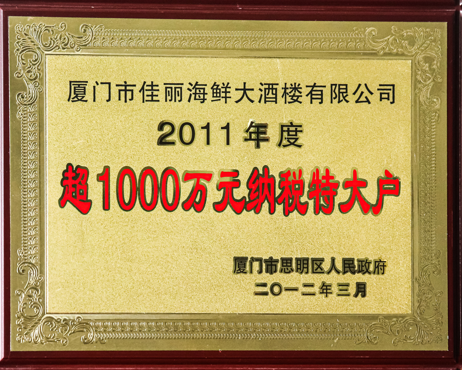 “彩名堂”的品牌美食,,,在成为餐饮业的一颗璀璨明珠的同时,,,为企业赢得了“2010年度凌驾1000万元纳税特大户”、“AAA级卫生企业”、“诚信谋划企业”、“天下商业主顾知足企业”、“2009-2010年厦门市诚信商家称呼”、“天下华人烹饪大赛金奖”、“中华餐饮名店”、“2009年度BEST50中国最佳餐厅”、“中国绿色餐饮企业”、“中国最佳餐饮企业设计奖”、“天下餐饮企业500强”、“福建省着名餐饮企业”、“福建第三工业300强企业”、“厦门市2006年重点民营企业”、“2007全球华商餐饮行业500强”、 “厦门市文明单位”、“厦门市特级餐饮企业”、“厦门市价钱、计量双信单位”等多项国家、省、市声誉称呼。。。。。